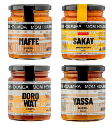 The brand is known for its range of traditional sauces, including Maffe (Senegal), Yassa (Senegal), Doro Wat (Ethiopia), and Sakay (Madagascar).